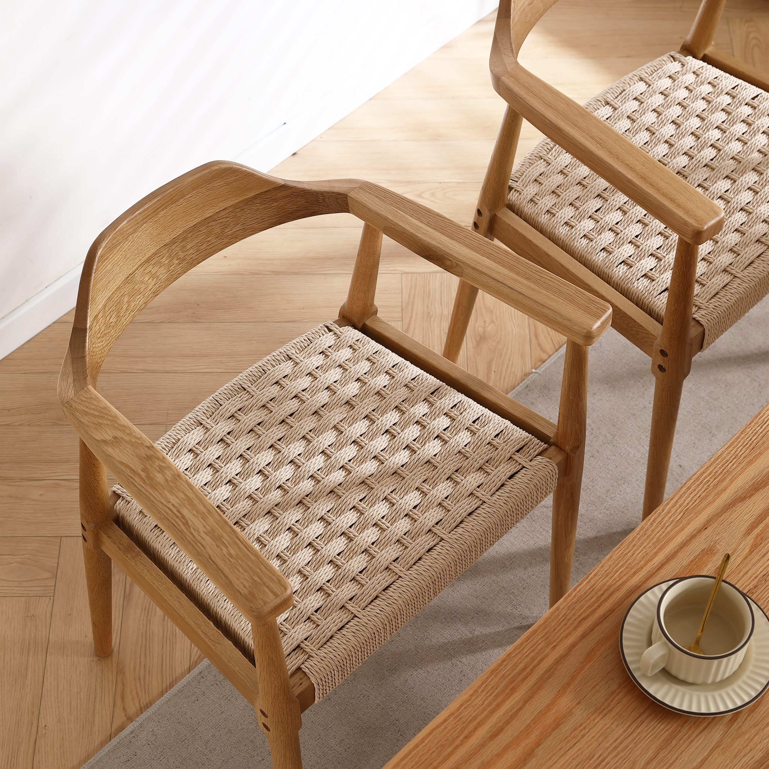 Esszimmerstuhl SW007/SW008 (Packung, 1 St), FSC®Eichenholzrahmen mit Sitzfläche aus Papierseil, einfache Montage