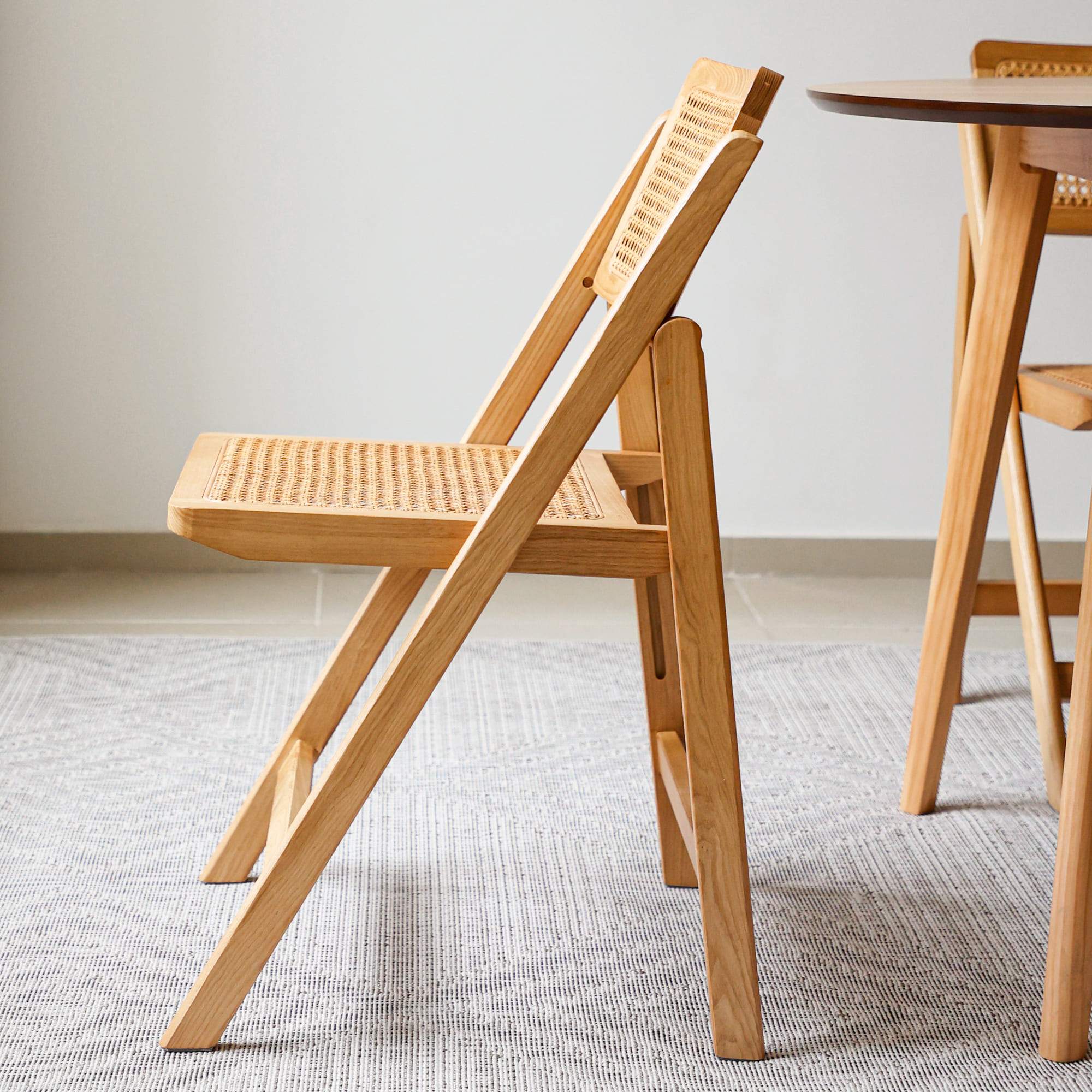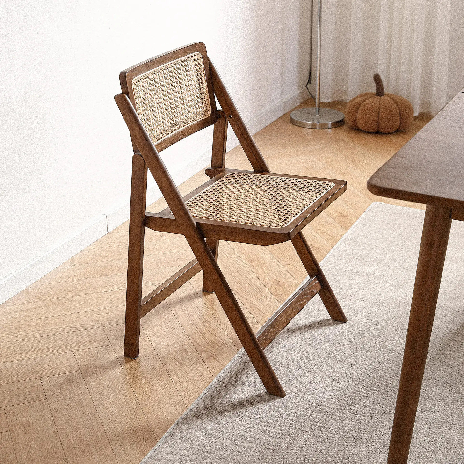 Der Wiener Geflecht Serie Esszimmerstuhl ist ein Möbelstück, dass Retro und Modern vereint. Der Stuhl kombiniert Massivholz und indonesische Rattanweberei und setzt auf ein elegantes minimalistisches Design. Mit den dreieckigen V-Form Beinen als Unterstützung und dem komfortablen gebogenen Rattanrücken, bietet der Stuhl sowohl eine Ästhetik als auch eine Garantie für den Komfort des Benutzers. Nach neun sorgfältigen Verarbeitungsschritten und 360 Grad Schleifen zeigt der Stuhl die hohe Handwerkskunst. Die Wahl von umweltfreundlichem Holzwachsöl als Beschichtung zeigt sowohl Schönheit als auch ein Bekenntnis zum Umweltschutz. Das einfache Farbdesign ist zurückhaltend, tiefgehend und elegant und entspricht der Ästhetik des modernen Möbeldesigns. Mit zwei Farbwahlen eignet er sich für verschiedene Einrichtungsstile, und ist eine hervorragende Wahl für Ihr Zuhause.