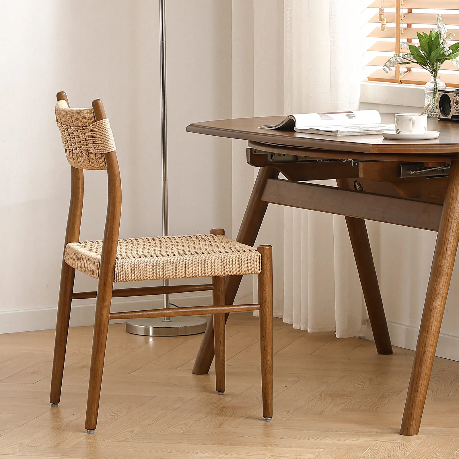 2er Set Esszimmerstühle SW025 | Massivholzrahmen & Papierseil