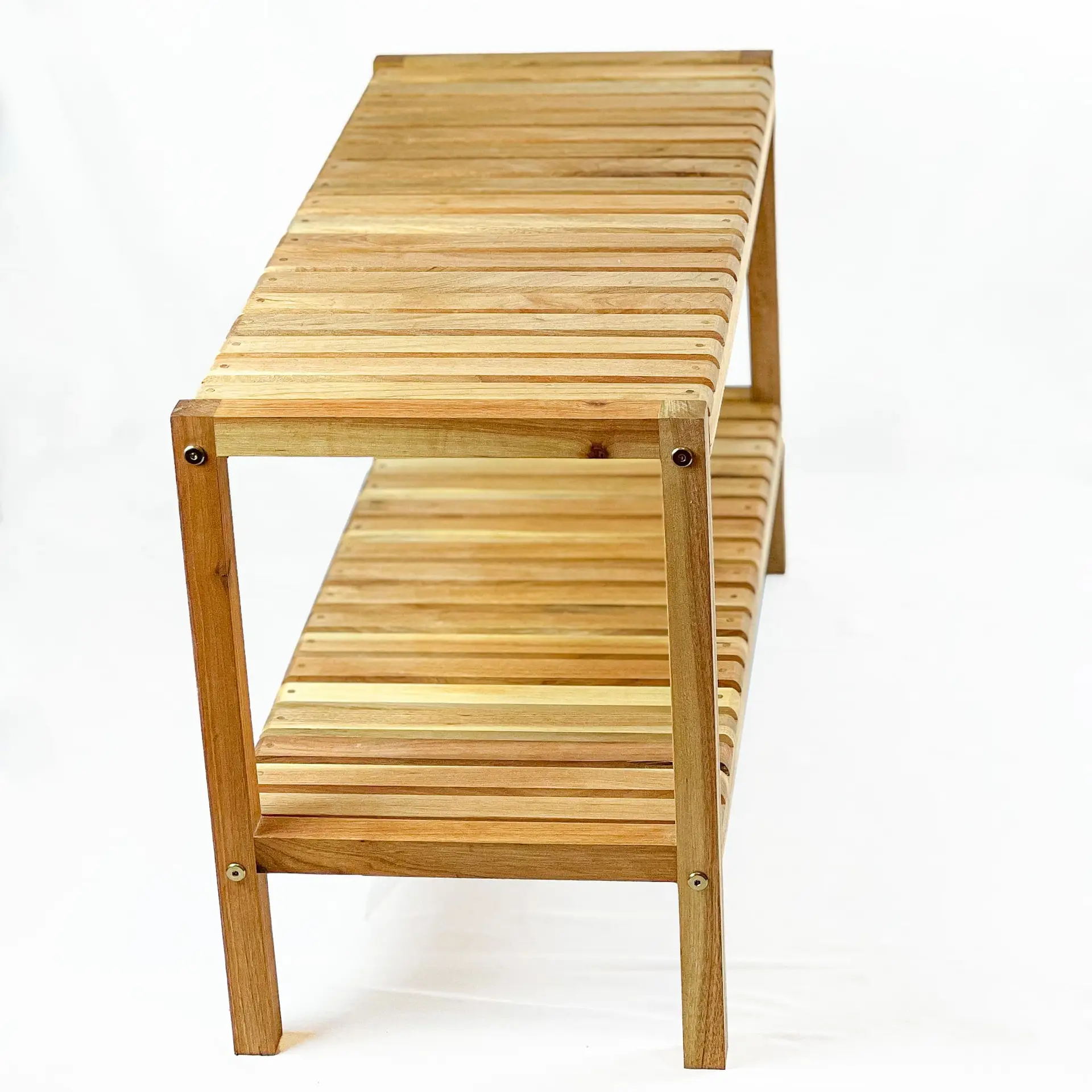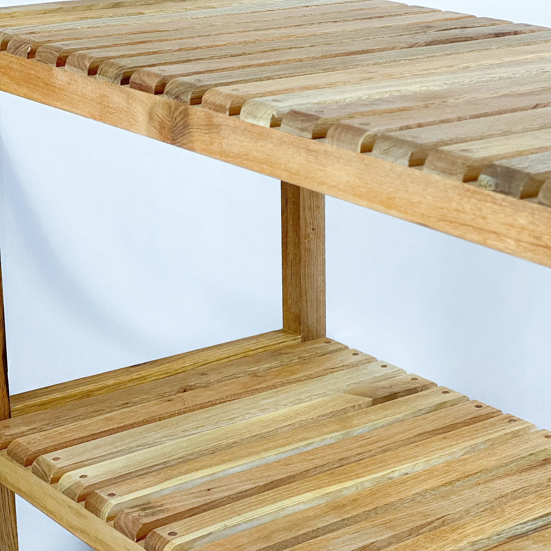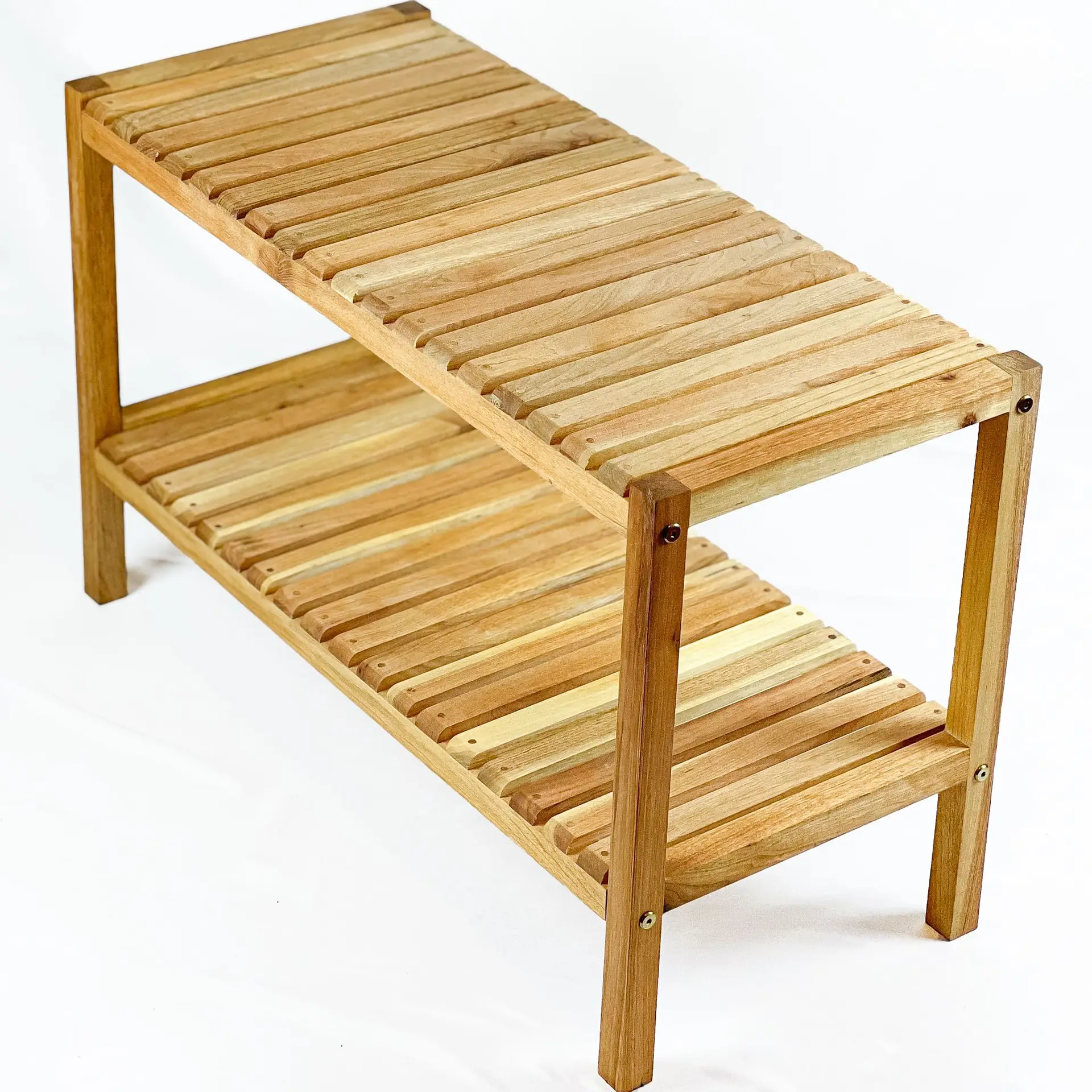 Im Gegensatz zu anderen billigen Regalen, die aus dünnem Holz bestehen, ist dieses Regal aus massivem Walnussholz gefertigt. Obwohl es eine einfache Montage erfordert, ist es nach dem Aufbau äußerst stabil und robust – Sie können es sogar als Schuhbank verwenden und darauf sitzen.